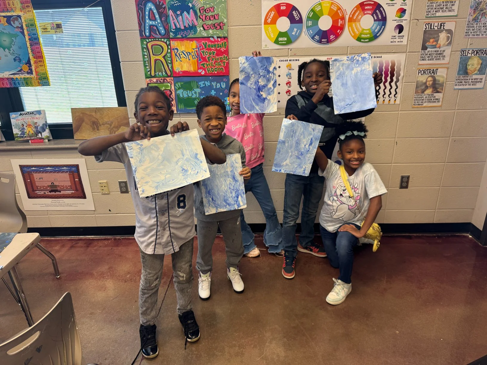 Students at Oxmoor Valley Elementary School learning new printmaking techniques