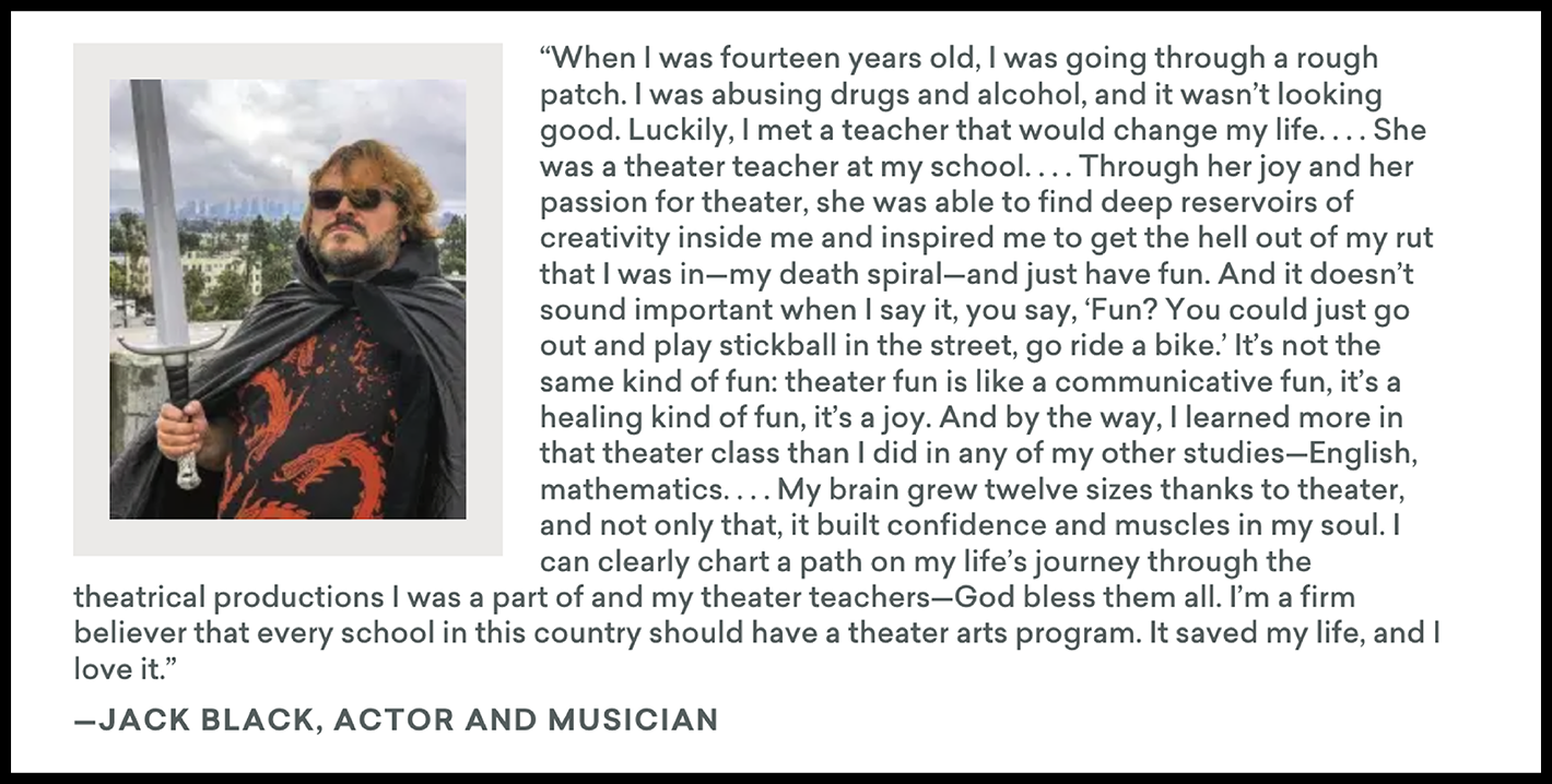 Quotes borrowed from American Academy of Arts and Sciences’ report “Art for Life’s Sake, The Case for Arts Education”.
